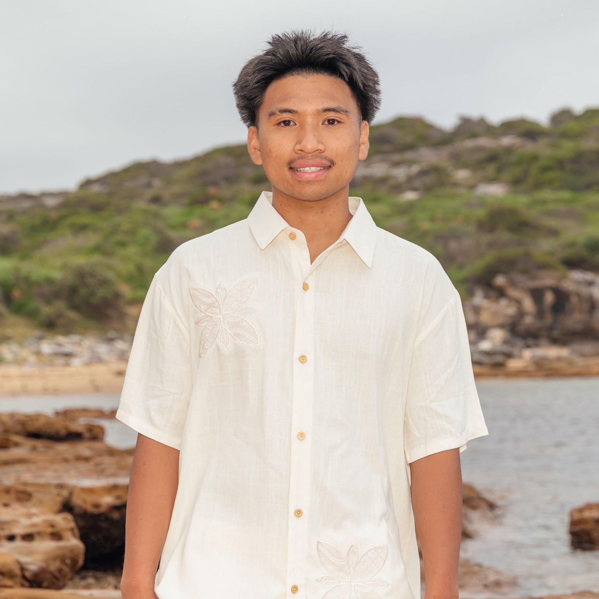 The Honor Shirt is a bold men’s island-inspired shirt that showcases powerful Polynesian tattoo artistry through two beautifully embroidered patches applied to the garment. This design creates a striking yet balanced look that honors tradition while embracing modern style. Crafted from a lightweight and breathable viscose-linen blend, the Honor Shirt offers exceptional comfort for warm climates and everyday wear. Available in classic White, Navy, and Brown, and designed in inclusive men’s sizing from S to 5XL, this piece is perfect for those who value culture, style, and comfort.