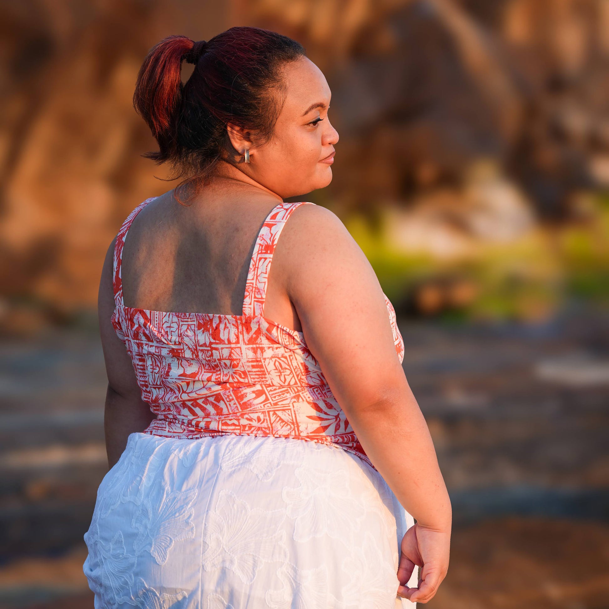 - Print: Polynesian, inspired print