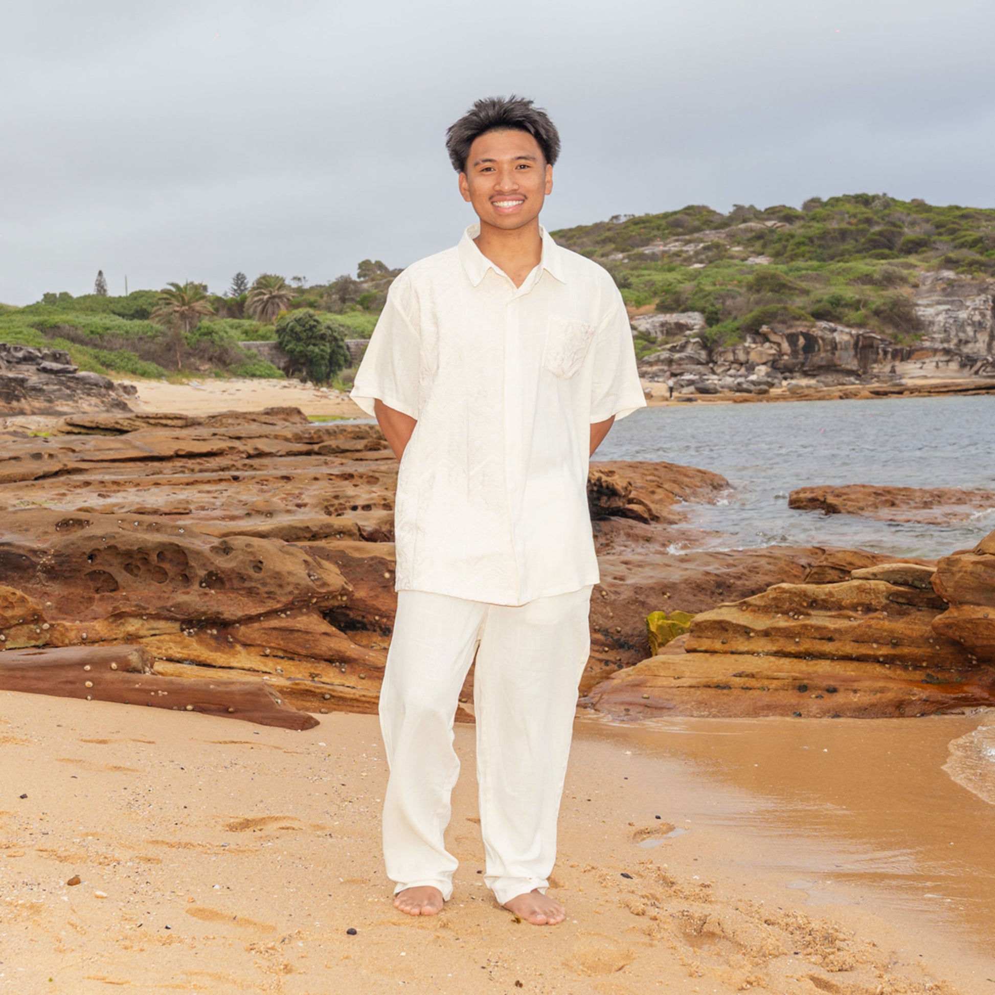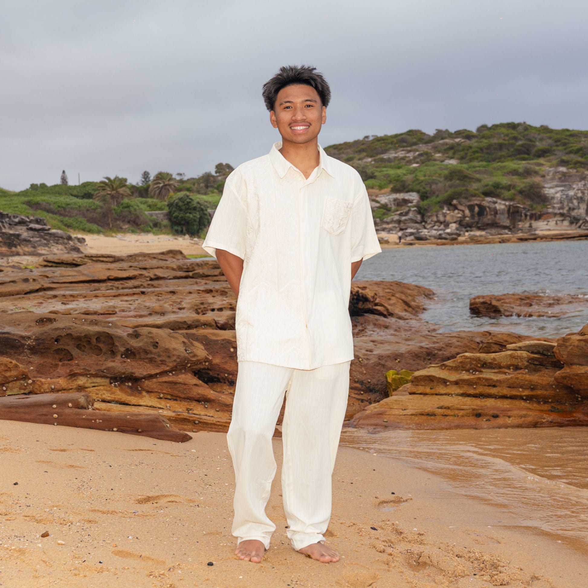 The Zion Shirt is a refined men’s shirt that blends timeless island style with powerful Polynesian cultural artistry. Designed with full embroidery along one side panel and an embroidered pocket on the opposite side, it features detailed Polynesian tattoo-inspired patterns that celebrate heritage and craftsmanship. Made from a lightweight and breathable viscose-linen blend, this shirt delivers all-day comfort and effortless sophistication for warm climates. Available in classic White, Navy, and Brown, the Zion Shirt is offered in inclusive men’s sizing from S to 5XL.